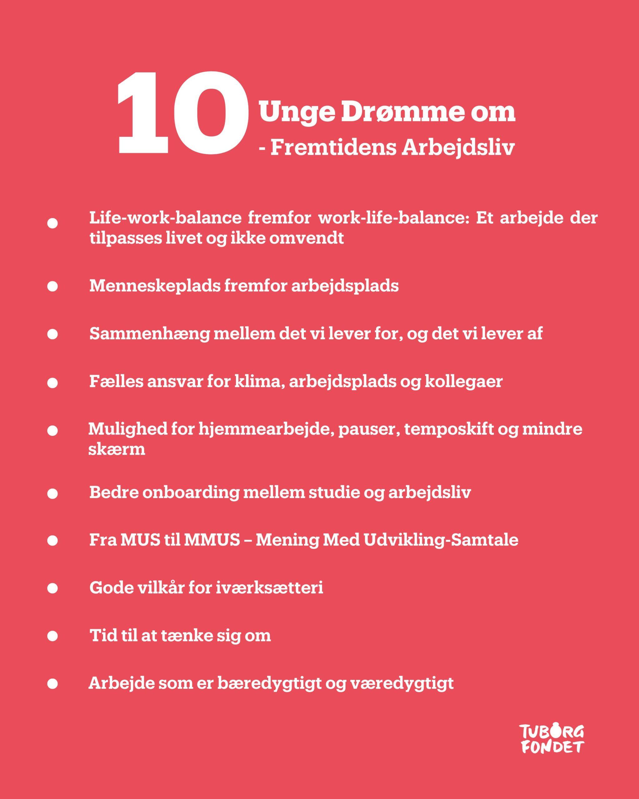 I december afholdt Tuborgfondet en workshop for unge og unge-organisationer om fremtidens arbejdsmarked – vi har her samlet 10 drømme om fremtidens arbejdsliv, som kom frem i løbet af eventet.