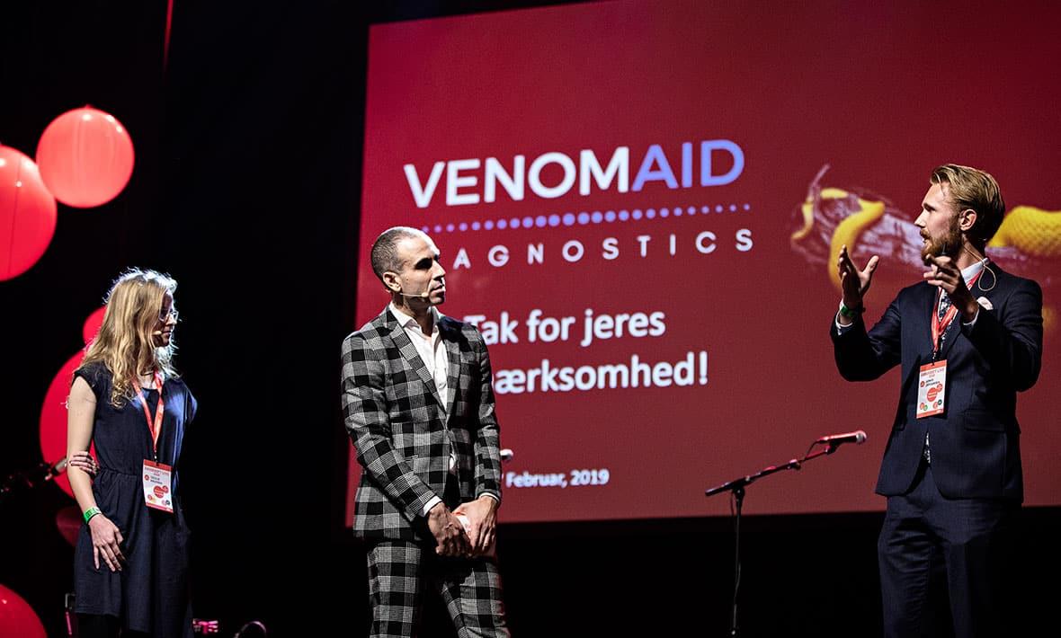 Vi skal også møde studerende- og verdensmåliværksætterne i Venomaid; Jonas A. Jürgensen og Cecilie Knudsen. De er i fuld gang med at udvikle en metode til præcist at diagnosticere slangebid. Vi spørger Fonden for Entreprenørskab, hvordan vi får endnu flere unge til at skabe virksomheder, der kan forandre verden og tænke Verdensmålene direkte ind i deres forretningsplan.