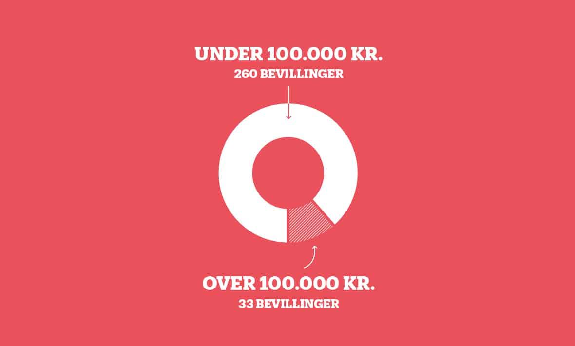 I 2019 fik Tuborgfondet ca. 1.600 ansøgninger, og vi har støttet projekter over hele Danmark. Vi har uddelt 293 bevillinger, og vi har både givet store beløb til flerårige samarbejder og hurtige penge – med 10 dages svartid – til mindre initiativer, hvor fx unge samler andre unge i fællesskaber om bl.a. festivaler, lokale muligheder for indflydelse, grønne indsatser og netværk.
